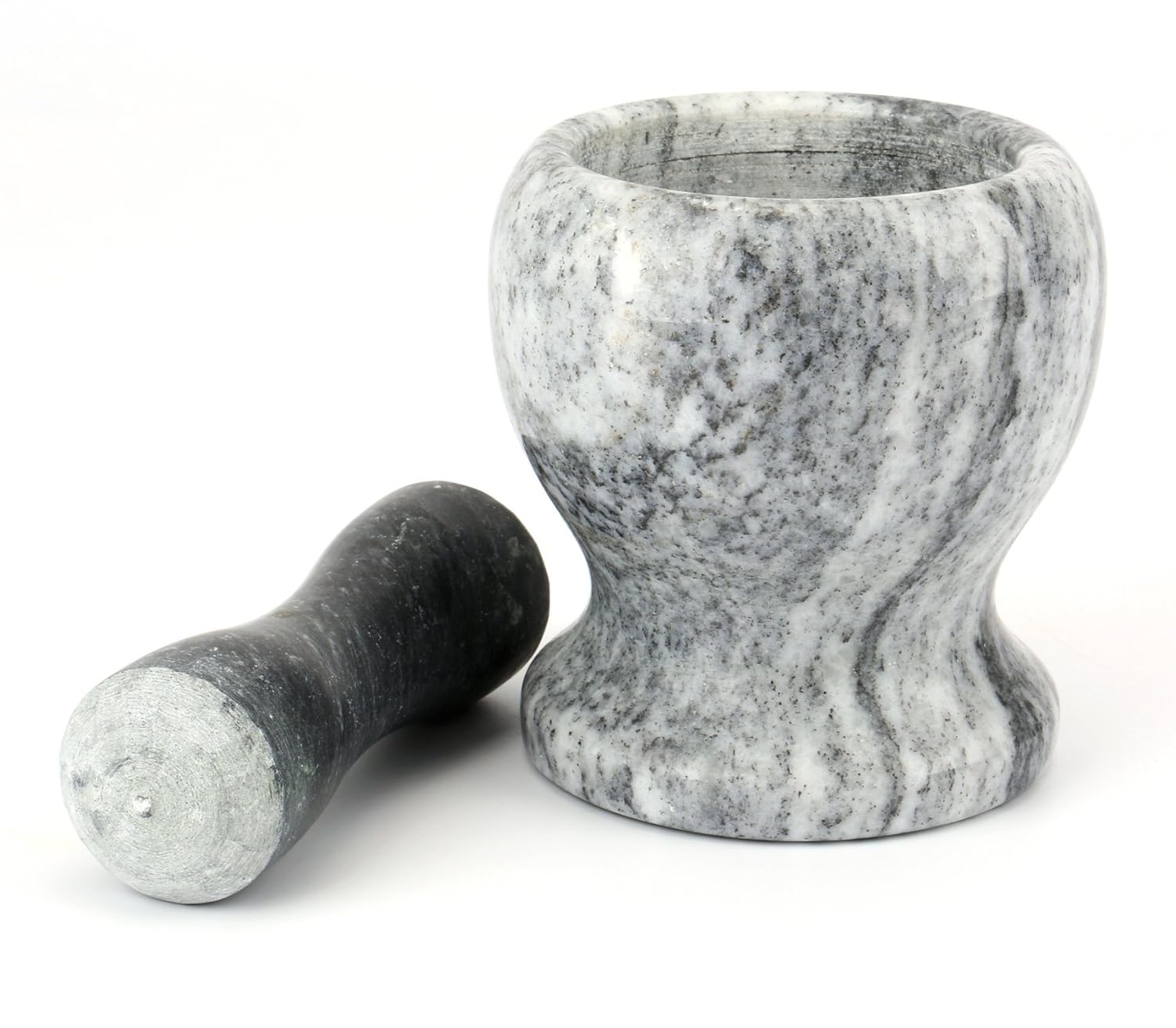 Bekith Gorgeous White Gray Marble Mortar and Pestle best Seasoning & Spice Tools