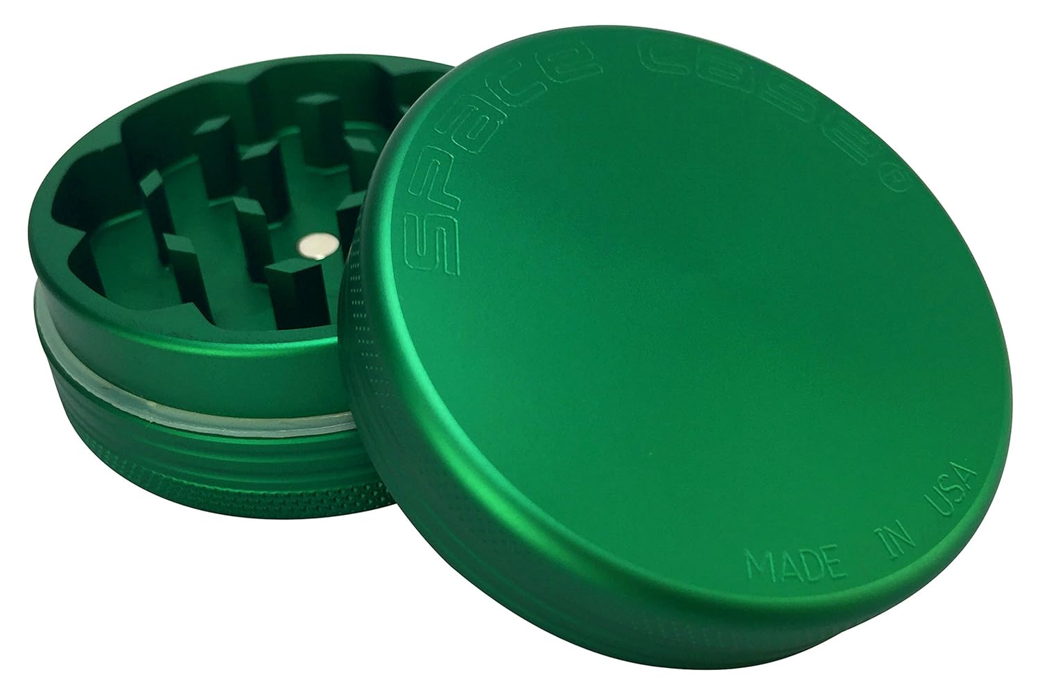 Are you sick and tired of using cheap, crappy plastic grinders? Worried about paying too much for a low quality grinder? Looking for premium quality at the best price? We are long time users just like you, so we understand your concerns. Look no further! We created the perfect grinder you will love and cherish for years to come!Space Case Grinder 2 Piece Small Matte Green is best for youThis small matte green Space Case Grinder is made in the USA from aircraft grade aluminium. It is also anodized for extra strength. The diamond cut teeth ensure maximum sharpness. This small sized grinder is 2' wide by .87' tall. See the Space Case difference and order yours today!
