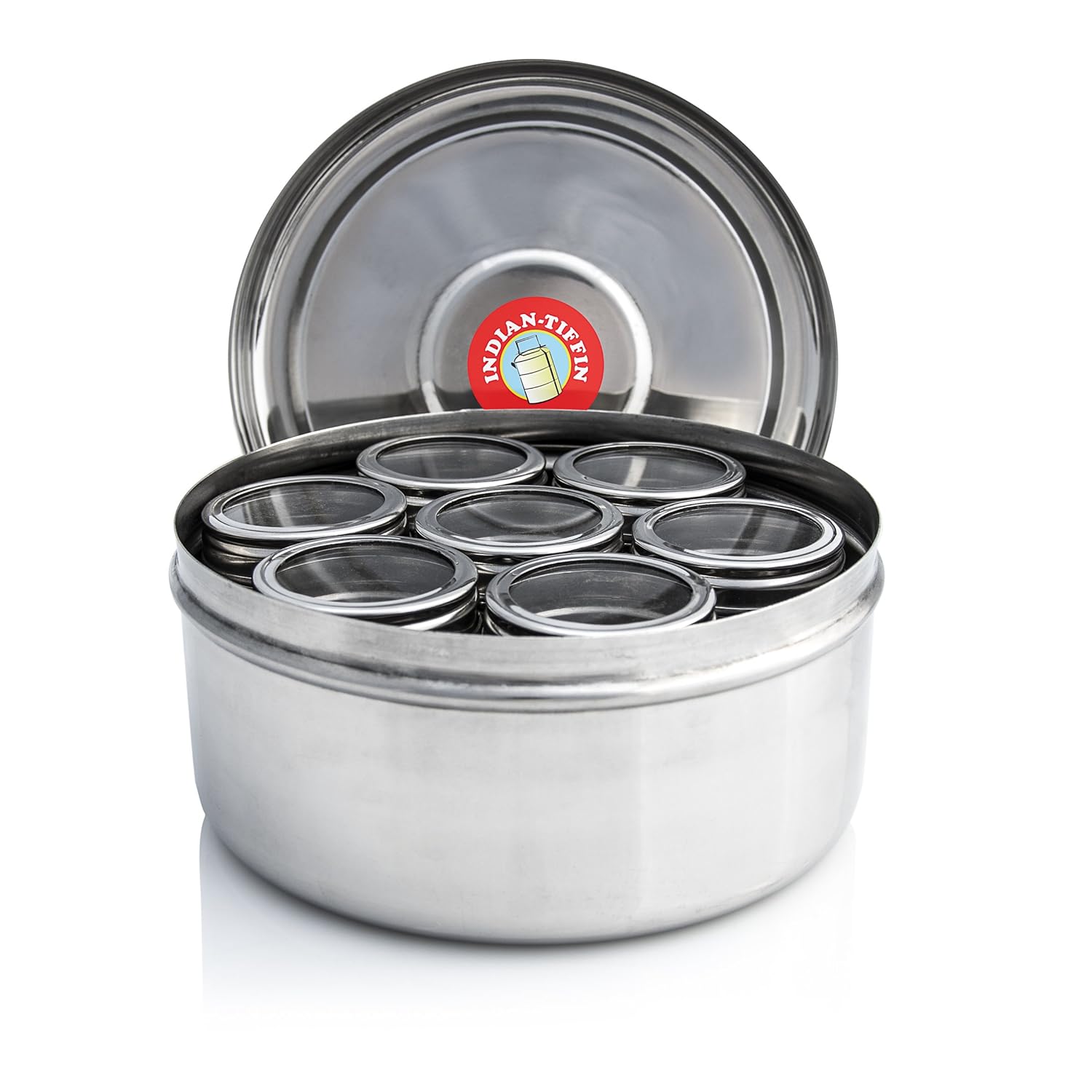 Are you sick and tired of using cheap, crappy plastic grinders? Worried about paying too much for a low quality grinder? Looking for premium quality at the best price? We are long time users just like you, so we understand your concerns. Look no further! We created the perfect grinder you will love and cherish for years to come!Masala Dabba - 7 Pots With Individual Clear See Through Lids is best for youA masala dabba is an essential part of any home. This dabba is a classic and is used by both Indian and non indian households. This item has a sleek finish and will sit comfortably in any kitchen. This version is exclusive to Indian-Tiffin as each pot has its own clear lid, which seals in freshness.