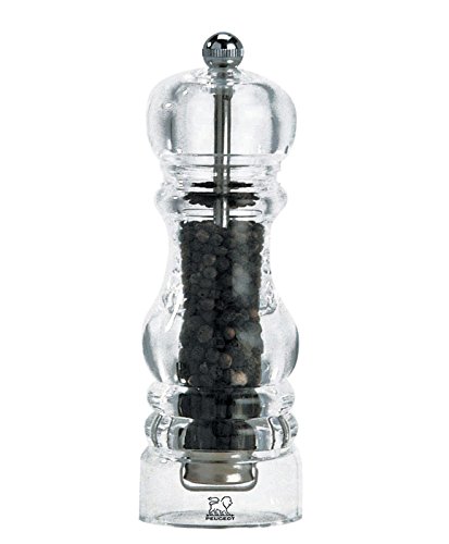 Are you sick and tired of using cheap, crappy plastic grinders? Worried about paying too much for a low quality grinder? Looking for premium quality at the best price? We are long time users just like you, so we understand your concerns. Look no further! We created the perfect grinder you will love and cherish for years to come!Peugeot 900818 Nancy 7 Inch Pepper Mill, Acrylic is best for youProduct Description Advantage of Freshly Ground Spices There are many benefits to freshly grinding pepper, salt, herbs and spices for cooking and seasoning. A quality mill with a specifically designed grinding mechanism will release the aromas and essential oils of that spice. Freshly ground pepper and spices have more aroma and better flavor than pre- ground. Another advantage of using freshly ground spices or minerals (salts) is the control a mill provides for determining the coarseness (size) of a grind. A high quality pepper, salt or spice mill gives you the ability to choose and change the coarseness according to taste or necessity. How to Choose a Good Mill When looking for a pepper, salt or spice grinder, consider the following: Grinding mechanism: Choose a grinding mechanism that can withstand daily use: one that is well made and produces a consistent grind. Ideally, the grinding mechanism should be designed to handle a specific spice, as each spice has different physical characteristics that will benefit from different design features. Design and appearance: Whether it's traditional or modern, manual or electric, a mill can be an indispensable tool in your kitchen and a beautiful part of table decor. Ease of Use: A quality mill should be easy to adjust, easy to fill, and feel comfortable in the hand. History of Peugeot Peugeot's story starts in the 19th century when the Peugeot brothers converted the family's gristmill into a steel foundry. They began producing award winning hand tools immediately after opening and went on to produce a diverse range of exceptional quality products including small appliances, bicycles and most notably, automobiles. (Although now operating as a separate company, the Peugeot car company continues the same commitment to quality and innovation that is a Peugeot hallmark). In 1840 Peugeot created their burr style coffee grinder and adopted that design to accommodate peppercorns in 1874. The resulting pepper mechanism design is still used today in every Peugeot pepper mill. Peugeot's iconic pepper grinding mechanism design is often copied, but never equaled. Today, Peugeot offers six unique spice-specific mechanisms plus the original burr-style coffee grinder. There are no shortcuts: each mechanism is designed to get the most out of the spices they are intended for. After more than 160 years, Peugeot mills and grinders remain the benchmark of the industry and have earned their position as the mill of choice in world class kitchens. It's All About the Mechanism The primary difference between Peugeot and all other brands are the spice-specific mechanisms. Peugeot has 7 unique spice specific mechanisms for pepper, salt, herbs and spices, coffee, wet salt, chili peppers and nutmeg. For each spice, there is one - and only one - Peugeot grinding mechanism, each made of the ideal design and constructed from the best material available for its intended use. All Peugeot mechanisms are made in France and carry a lifetime limited warranty. Peugeot's Pepper Grinding Mechanism is a two stage burr-style system. During production, the helix-shaped grooves and grinding teeth of the pepper mechanism are individually cut before the steel is case hardened to make it virtually indestructible. The mechanism is then given a proprietary treatment to provide additional protection against corrosion. During use, the helix- shaped grooves guide whole peppercorns through the mechanism to crack, then grind to a consistent size by a double row of teeth. This process releases the pepper's essential oils, resulting in more flavor and aroma for your dish. This patented mechanism is found on every Peugeot Pepper mill and is widely considered the best pepper mechanism available Peugeot's Salt Crushing Mechanism features two ribbed plates which work to fracture and crush coarse, dry sea salt to a consistent size. The salt grinding mechanism is made of corrosion resistant Stainless Steel, and is found on every Peugeot Salt Mill. Peugeot's Spice Mechanism is made of ceramic, and is specially designed to grind dried spices and flat leafy herbs to release their essential oils. It is particularly effective with dried aromatic herbs such as thyme, parsley, basil, oregano, and herbs de Provence, as well as dried seeds such as cumin. Peugeot's Chili Pepper Mechanism is made of case hardened steel for optimal hardness and resilience. This patented mechanism features a pre-cutting system and dual chamber reservoir. For use with dry, hot chilis such as birds tongue, African devils and Piri Piri. The Nutmeg Shaving Mechanism is made of treated stainless steel which is corrosion resistant, and offers superior edge retention. The Peugeot nutmeg shaver is equipped with a double stainless steel grater blade and a strong claw which enables the whole nutmeg to be very finely shaved, while keeping fingers safe. Intended for use with whole nutmeg nuts. Peugeot's Wet Salt mechanism has been specially designed for wet sea salt: a spiral guides the salt, ensuring that it does not stick together. The mechanism is made of ceramic because wet salt crystals are soft (wear is not an issue) but corrosive. Intended for use with damp sea salts such as Sel de Guerande. The Coffee Grinding Mechanism found in all Peugeot coffee mills is the foundation of Peugeot's grinding legacy. The case-hardened steel mechanism efficiently cracks and grinds coffee beans to the desired consistency:from espresso fine to coffee- press coarse. Peugeot Manual Mills For best results, hold mill and turn mill top in a clockwise direction only To adjust the