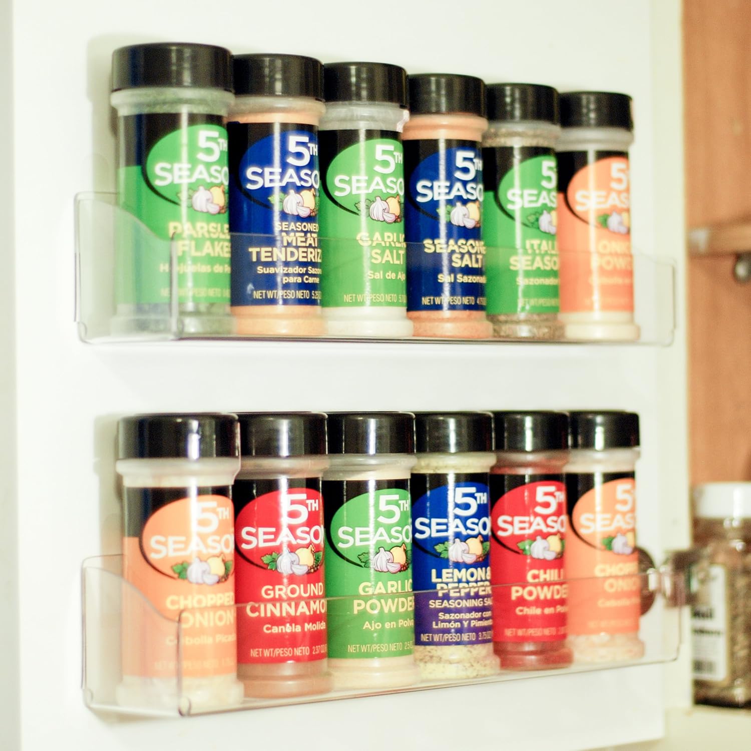 Are you sick and tired of using cheap, crappy plastic grinders? Worried about paying too much for a low quality grinder? Looking for premium quality at the best price? We are long time users just like you, so we understand your concerns. Look no further! We created the perfect grinder you will love and cherish for years to come!The Spice Caddy is best for youThis Spice Rack makes the perfect holiday gift for anyone who loves cooking or needs a little organization in their cabinets. No more digging to the back of the cabinet for your favorite spices. Removable mounting tabs allows you to place it anywhere and mount without screws! The clear polycarbonate material allows you to clearly see what is in the shelf. 12.25' Long x 3' deep holds most sized spice bottles. Made in the USA! Spices not included.
