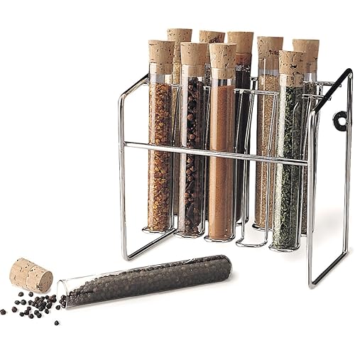 Spice Rack - Glass Spice Tube Set (Silver) (7"h x 7"w x 4.25"d) best Seasoning & Spice Tools