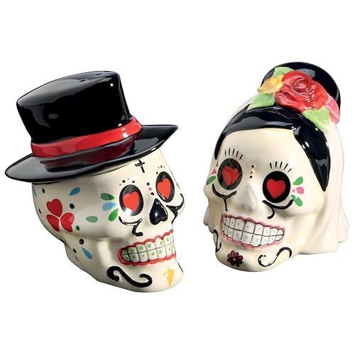 Day of the Dead Bride and Groom Skulls Ceramic Salt and Pepper Shakers is best for youDay of the Dead Bride and Groom Salt and Pepper Shakers. Made from ceramic. Approximately 3 inches tall (8 cm). Includes original manufacturers box and packaging. Made by Pacific Trading.