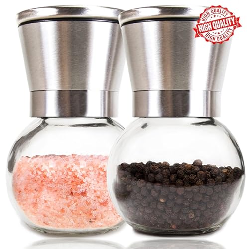Deluxe Stainless Steel Salt and Pepper Grinder Set of 2 - Professional Salt Mill and Pepper Mill 6 Oz Glass Body and 5 Grade Adjustable Ceramic Rotor - Perfect Idea for Gifts to Family & Friends By Chef Express Products best Seasoning & Spice Tools
