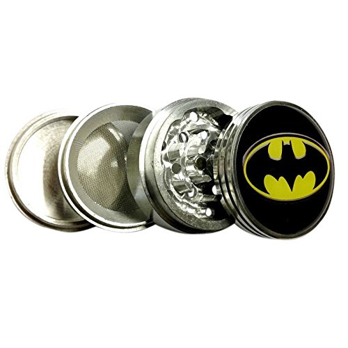 Grinder Batman Bat Signal Logo D1 Chrome Silver 2.5" Aluminum Magnetic Metal 4 Piece Herb & Spice Heavy Duty is best for you4 piece Aluminum Metal grinder. Contains approx. Twenty-Six sharp teeth in the main grinding chamber. The stainless steel micro mesh screen only allows pollen to pass through. The image is water proof and will not fade over time. Magnetic grinding compartment includes a mesh screen that automatically collects pollen as you grind. The bottom compartment can be used to store your ground herb or to hold and collect pollen. Our grinders are fairly simple tools and easy to use: 1. Place your herbs or Spices onto the teeth towards the outside rim. (Material should be dry enough for grinder to work properly. 2. Close and rotate the lid approx. five times in each direction. 3. Gentley tap to get the ground material out. 4. After a few uses fine material will collect on the bottom.