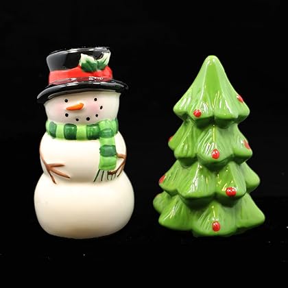 Snowman and Christmas Tree Salt and Pepper Shaker Set is best for youAdd a festive touch to your table with this fun pair of salt and pepper shakers. Each shaker measures 3.75' and is made from ceramic.