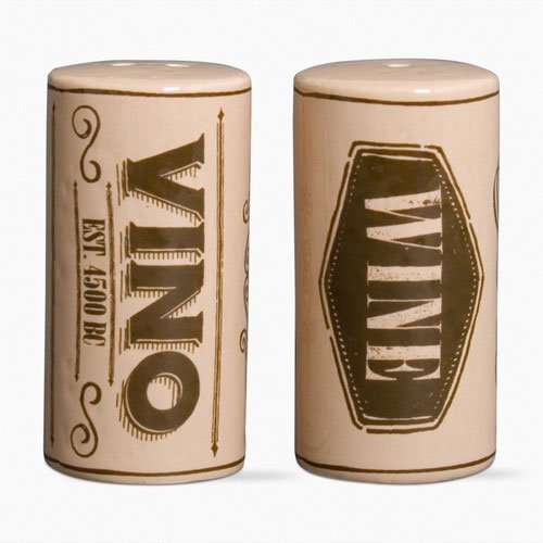 Tag 203699 Wine Corks Salt & Pepper Shakers, 2.5 x 1.25", Beige is best for youPepper your next cocktail party with charm. Clever salt & pepper shaker set is made from hand-painted earthenware in the shape of 2 wine corks. Rubber stoppers are included. Packaged in an attractive acetate box, this set makes a great gift for the wine-lover in your life.