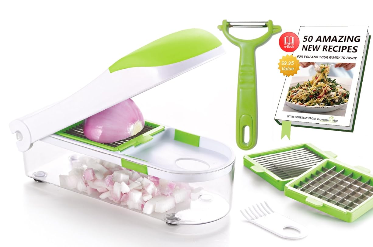 Vegetable's Chef - Onion, Vegetable, Fruit and Cheese Chopper - Dice, Slice and Chop for Salads, Soups, Ragout and More - Free Peeler and Recipe eBook mailed to You best Seasoning & Spice Tools