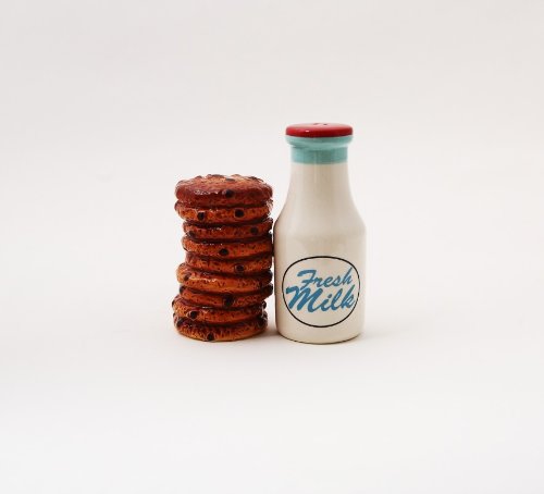 1 X Milk and Cookies Salt and Pepper Shakers is best for youCookies and fresh milk complement any kitchen! This set of ceramic and magnetic salt and pepper shakers is comprised of a jug of fresh milk and a stack of cookies. Measures: 4W x 4H inches.
