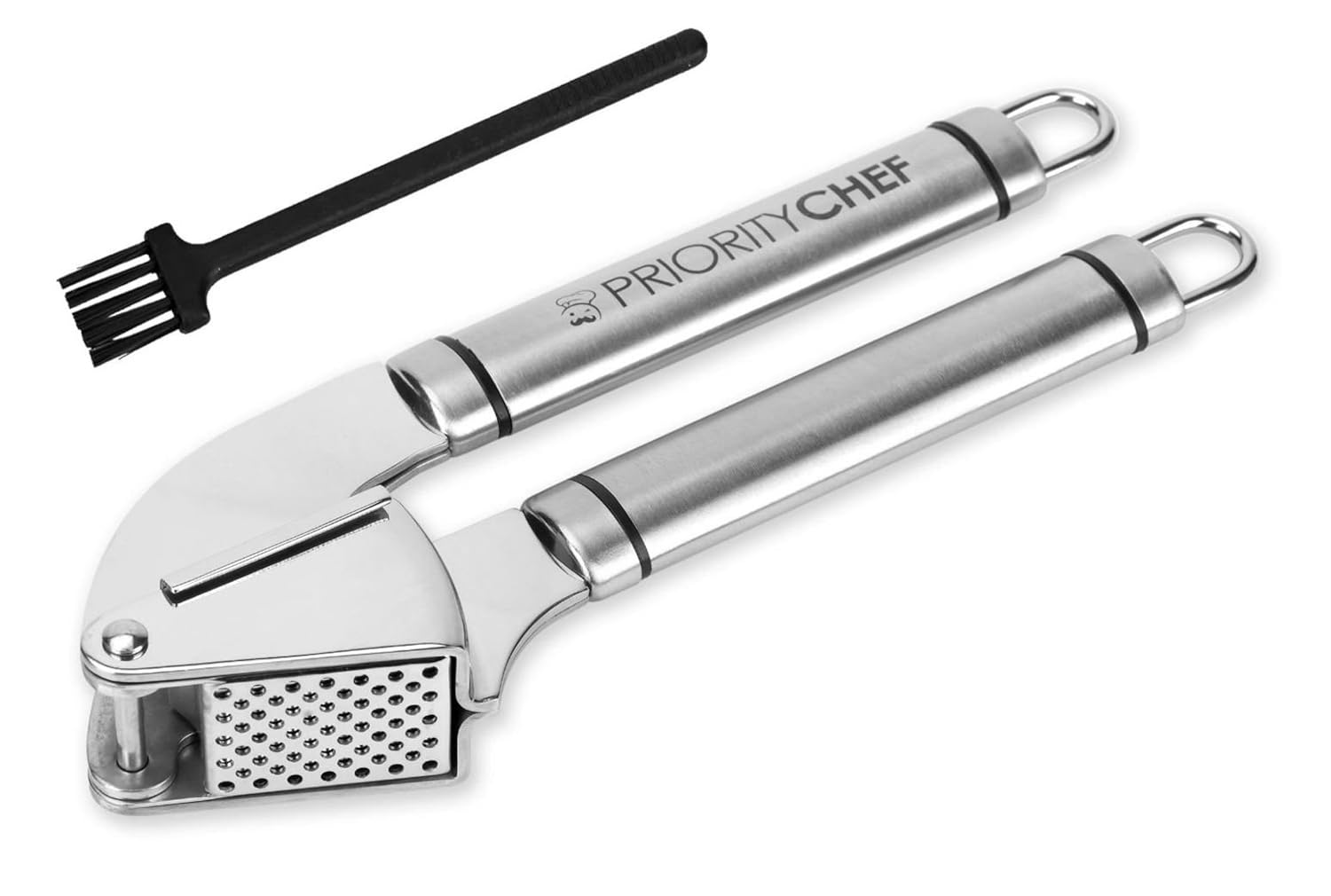 PriorityChef Garlic Press and Mincer, Free Cleaning Brush, 18/10 Anti Rust Stainless Steel is best for youThe Only Garlic Press You Will Ever Need With The Priority Chef Garlic Press You Can Look Forward To These Great Benefits - No more smelly 'garlic fingers'! - No need to touch the garlic, just place an unpeeled clove and mince. Easy clean up using the free brush and warm soapy water...and it's dishwasher safe! - Anti rust SS304 stainless steel - All garlic presses use small holes to squeeze the garlic through which can be easy to rust but with Priority Chef you rest assured that your food will not be contaminated with any germs from your press - Effortless mincing - Get the job done first time! Minces garlic easily with one motion, even with the peels on! - Garlic press quicker than before with the large size chamber, easily beats most other garlic presses on the market Garlic can be one of the most annoying foods to prep but not any more. Get Your Priority Chef garlic press today and begin to enjoy making all those tasty dishes that need so much garlic prepared for them, spaghetti, lasagne and more! Introducing Priority Chef’s Premium Garlic Press Why waste money on poor quality garlic presses? - Cheap garlic presses that rust after a few washes? Do you really want rust, bacteria and germs contaminating YOUR food? - Sub standard presses that use cheap zinc alloys bend and lose shape in a short time - Small chambers that take longer to mince garlic - Not able to mince unpeeled garlic cloves - Not dishwasher safe Remember, the Priority Chef garlic press is backed by a 100% money back guarantee, if you are not completely satisfied we will refund your payment in full.