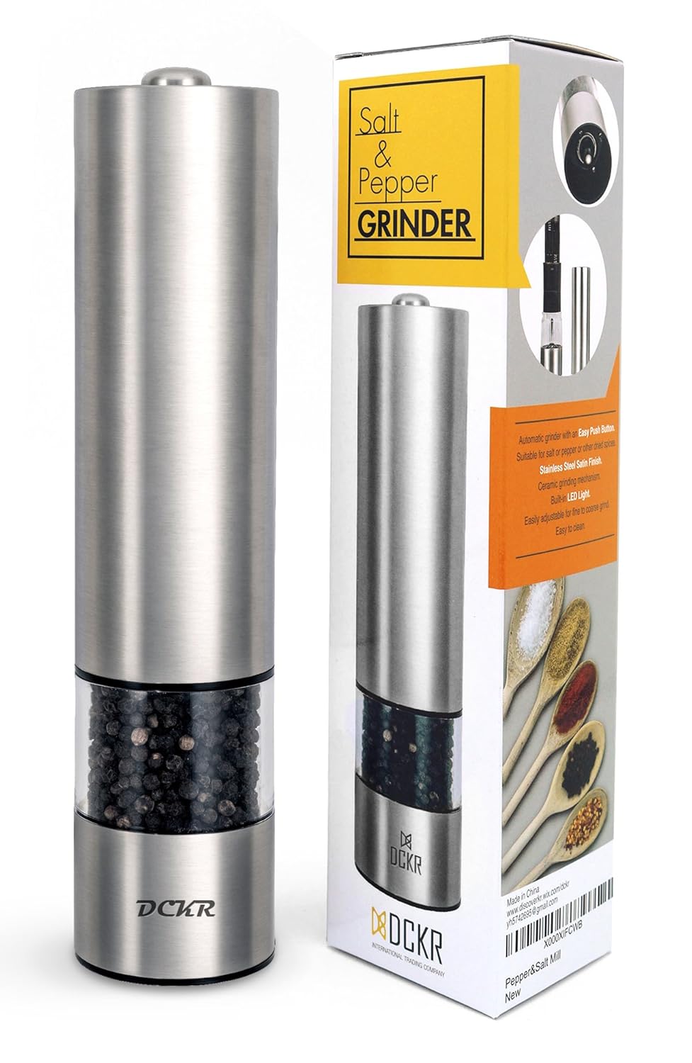Salt and Pepper Electric Grinder - Spice Mill fine Adjustable Ceramic Blade with Stainless Steel is best for youDCKR' Professional Stainless Steel Salt and Pepper Grinders For Everyday Cooking! Do you love cooking gourmet dishes, and would like freshly ground salt and pepper for the perfect taste? No more struggling to manually grind your spices. All you need to do with this amazing mill is to press a button. And voila, you get the right amount of spices without struggling at all! • Easy To Use & Incomparable ConvenienceAdding fresh and tasty spices to your foods has never been so easy. Amazing DCKR' electric pepper mill allows you to add salt or pepper to your foods just by pressing a button. • Use The Right QuantityHave you ever used a common salt and pepper mill? You accidentally added so much salt or pepper that it basically became inedible. This will never happen with our premium electric grinder. Clear acrylic window allows you to easily see how much salt, pepper or spice you have left, while looking classy when filled. • Unbeatable Quality Is made of High-quality & durable Stainless Steel and ceramic grinding wheels mechanism. Easily Adjustable Ceramic Grinding Plates according to your preference. • Contemporary Design Sleek stainless steel body and clear ceramic makes this pepper mill one of the most stylish kitchen tools you could ever have. As well as in any kitchen decor. ◊ Batteries & Salt and Pepper not Included If you're tired of your old salt and pepper shakers,and would like freshly ground salt and pepper then our Ceramic Grinders are the perfect choice for you!″Go Click the Add To Cart Now ″