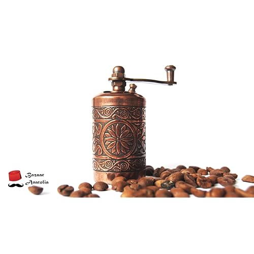 Turkish Handmade Grinder 3.0'', Spice Grinder, Salt Grinder, Pepper Mill (Antique Copper) is best for youColor:Antique Copper Ottoman style, traditional pepper mill is both decorative and functional. Vintage Brass spice grinder with a short handle, detachable ornate holder and sliding pour hole. With corrugated rollers Turkish hand mills produce a more even grind size distribution. Mills are used to grind pepper, salt and spicery like peppercorn, cardamom, coriander.. This decorative spice grinder will be a wonderful addition to display in your kitchen and home decor. Anatolian made This salt/pepper shaker made of brass with hand carved design will add a great touch to your table. Brass, which is obtained by amalgamating copper and zinc, is durable, hard, and yet easly workable, which made it a prime metal. Do not clean with Water. CONTAINS: 1 Traditional Black Pepper mill;Salt and Spice Grinder