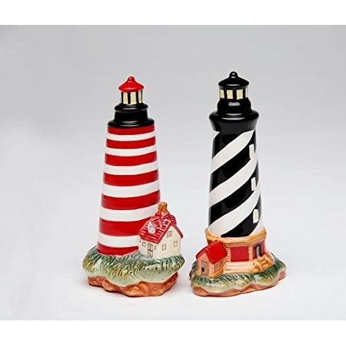 Black Striped and Red Striped Lighthouse Salt and Pepper Shakers is best for youThis gorgeous Black Striped and Red Striped Lighthouse Salt and Pepper Shakers has the finest details and highest quality you will find anywhere! Black Striped and Red Striped Lighthouse Salt and Pepper Shakers is truly remarkable.Black Striped and Red Striped Lighthouse Salt and Pepper Shakers Details: ; Condition: Brand New ; Item SKU: SS-CG-10480 ; Dimensions: H: 4 x W: 2 x D: 2.25 (inches) ; Crafted with: Ceramic ; More Information: Set Includes: 1 Salt Shaker and 1 Pepper Shaker