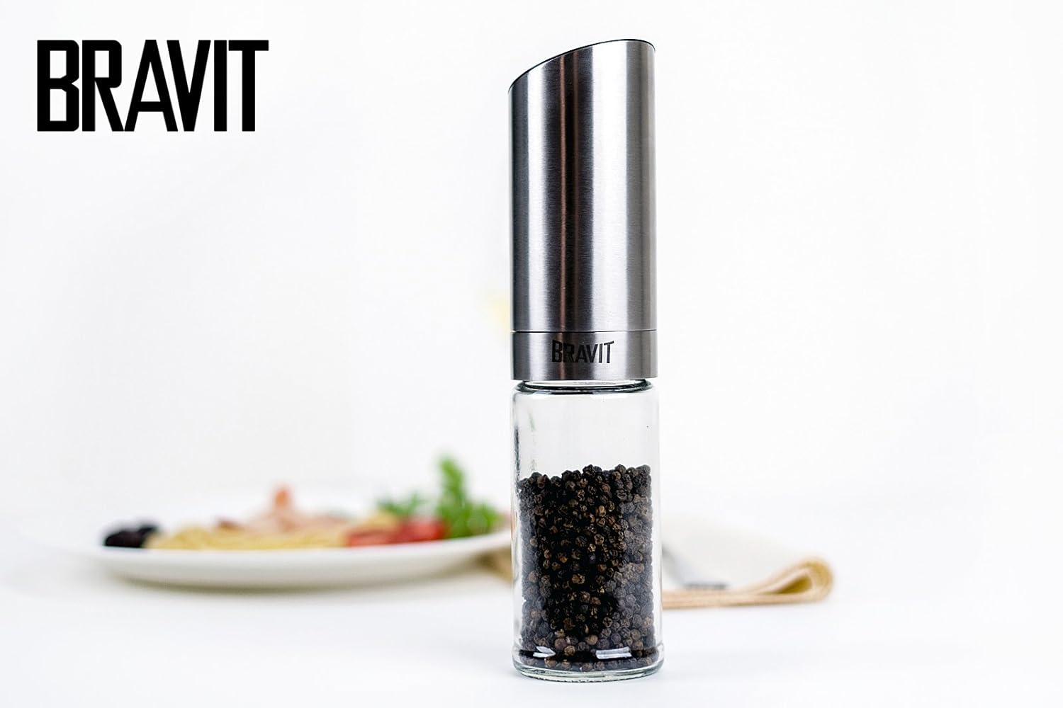 BRAVIT Automatic Gravity Operated Salt Mill or Pepper Grinder with Stainless Steel Body and Ceramic Grinder Mechanism best Seasoning & Spice Tools