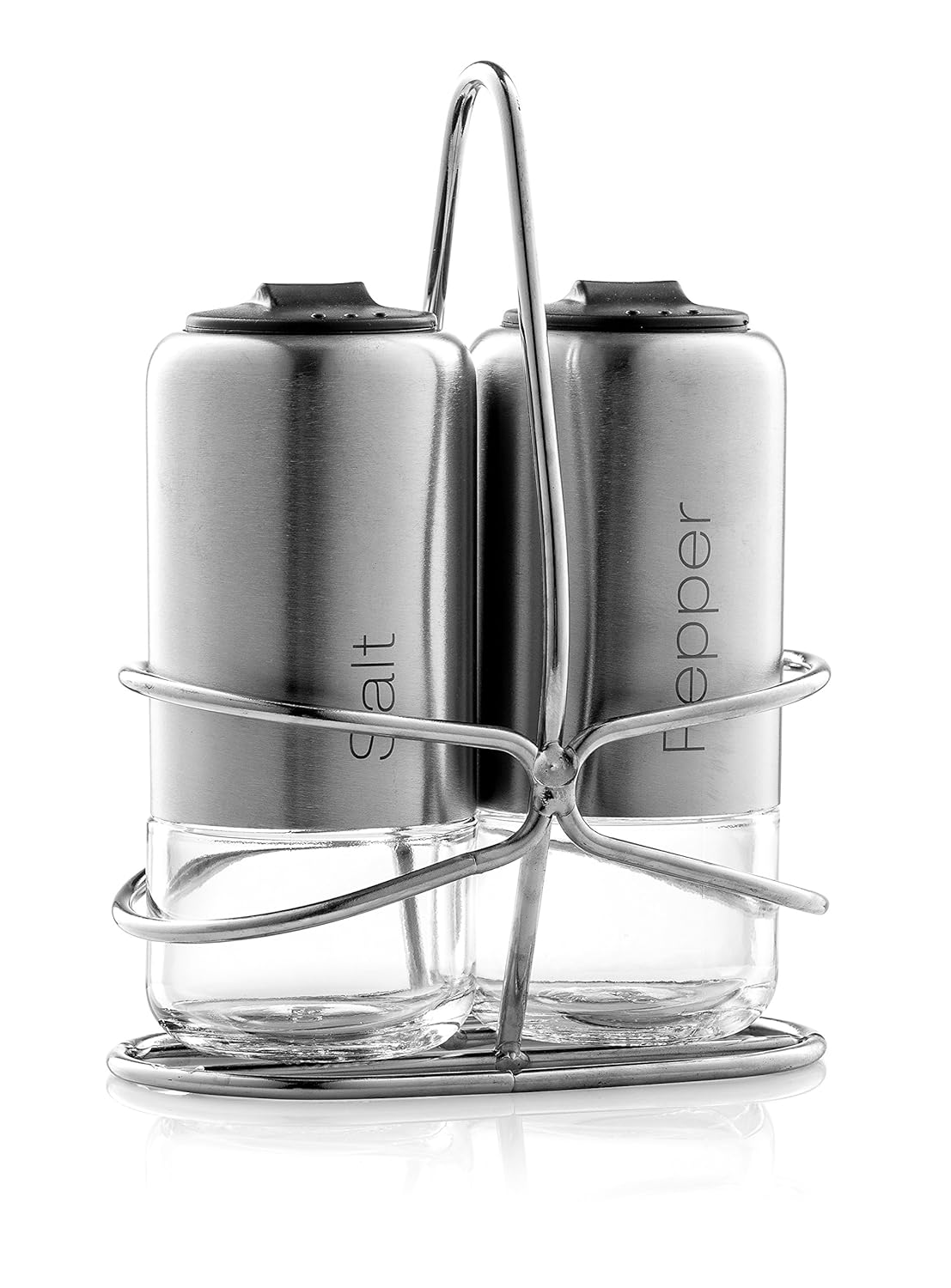 Home Fashions Salt and Pepper Shakers, Set of Two Grinder Designed with Glass Bottom and Stainless Steel, Comes with Metal Stand best Seasoning & Spice Tools