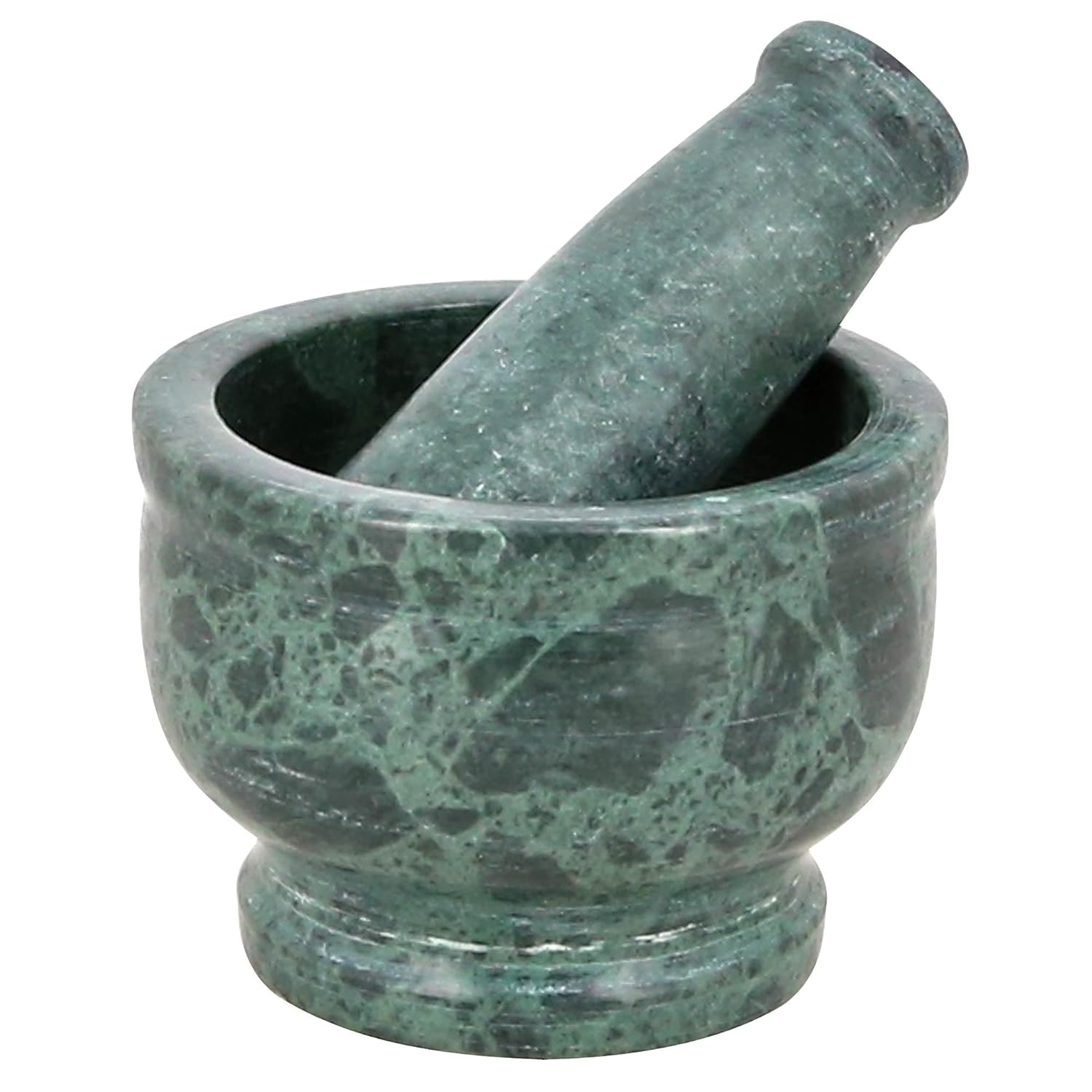 Indian Gift Ideas Stone Mortar And Pestle Set Spice Mixer For Kitchen 3 inches-Green Durable & Easy to Use is best for youAny professional chef will tell you that the absolute best way to unlock the flavor potential of herbs, seeds and whole spices is not to drop them in an automatic machine, but to carefully grind them by hand. With the Handmade Natural Stone Mortar and Pestle Set, you have the perfect solution for readying all of the seasonings and spices for your recipes in the form of a durable, all-natural handcrafted kitchen utensil set. The Handmade Natural Stone Mortar and Pestle Set is designed to make grinding an effortless task. The mortar bowl is the perfect shape and size to hold a generous serving of whatever you're preparing, and its sides are high to keep everything neatly contained inside. The beveled base provides sturdiness, so that the mortar doesn't tip or slide while you're working. The pestle included in the set fits perfectly in the hand. The rounded end is designed to rest against your palm, so that you can get the most possible leverage for a smooth, easy grind. With the Handmade Natural Stone Mortar and Pestle Set, you don't have to worry about contaminating your food with bacteria or toxic additives. The all-natural stone is nonporous, so germs can't hide inside. While both pieces are striking with their rich color and speckled patterning, the look is a natural feature of the stone and not produced with paint. Artisan crafted by skilled, experienced stonemasons in Agra, North India, the Handmade Natural Stone Mortar and Pestle Set is produced out of genuine stone from Rajasthan, the very place where the marble from the Taj Mahal was sourced. Like that Wonder of the Ancient World, this mortar and pestle set is a feat of artistry in its own right, and no two are ever complete identical. Prepare spices, herbs and seeds to perfection just like the pros, or give someone a kitchen gift that will stand the test of time. Order the Handmade Natural Stone Mortar and Pestle Set today!