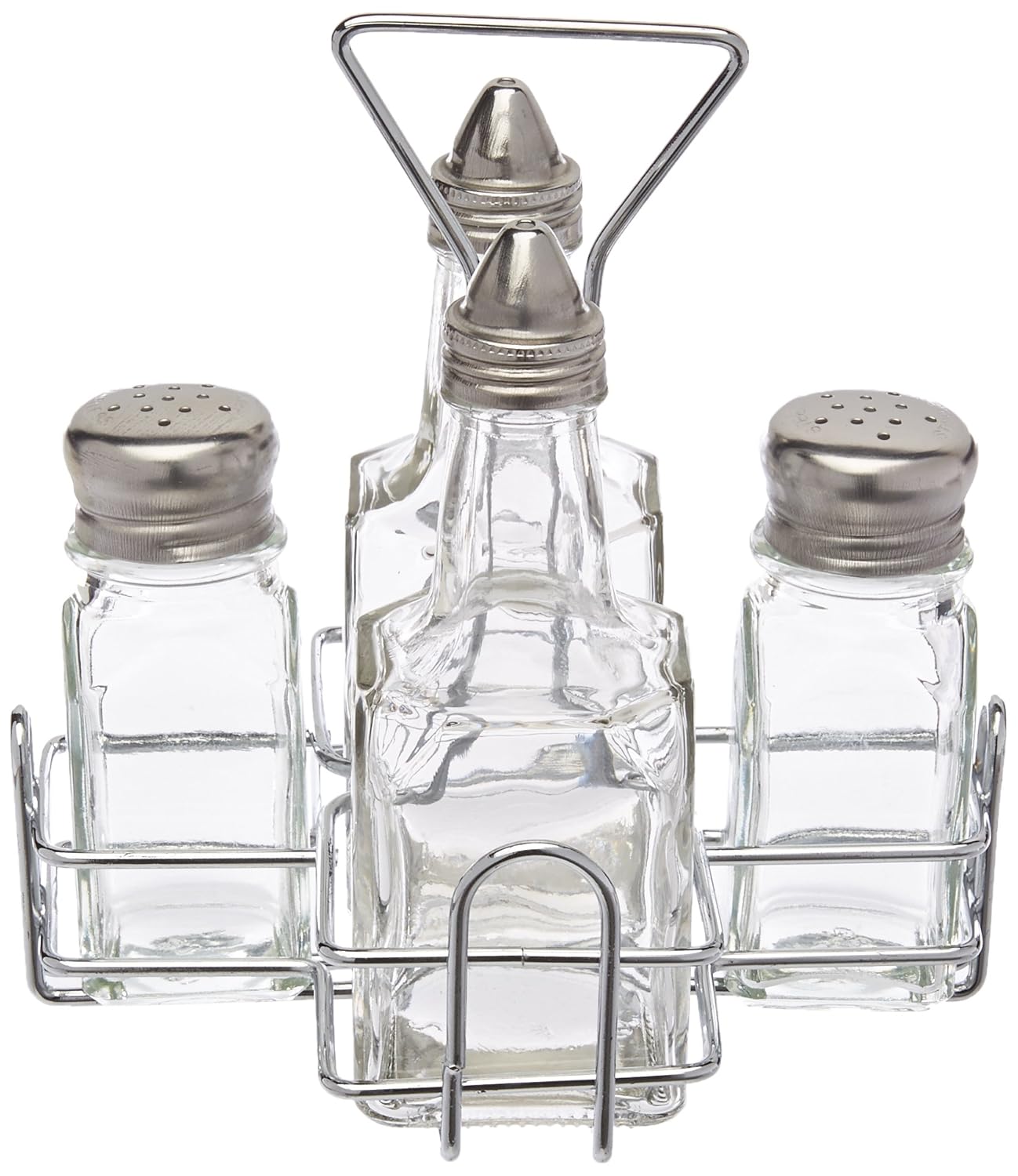 Why Use New Star Foodservice 22209 Holder with 2 Square Salt and Pepper Shakers and 2 Oil and Vinegar Cruets ?