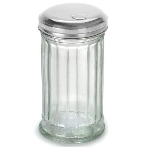 12 Ounce - Glass Sugar Dispenser with Stainless Steel Lid is best for youThis glass sugar dispenser will come to the rescue when you want ease of serving and dispensing sugar with coffee, tea, baking and tabletop service. The dispenser features a quality glass construction with a diner and retro style design. The stainless steel lid makes for easy pouring and storage. Find many other uses for your dispenser such as grated or Parmesan cheese, or other spices. The shaker is dishwasher safe and the container has a 12-oz capacity. You will surely enjoy the convenience of just shaking some sugar into your hot beverage or breakfast instead of getting out the whole package of sugar and having to dig in. The clear glass will easily show you the contents inside. Perfect for the table, counter, restaurant, diner or cafe!