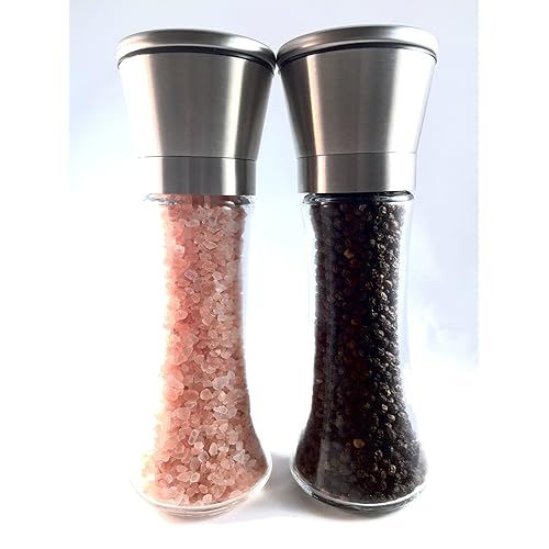 Coziii Premium Brushed Stainless Steel Salt and Pepper Grinder Set / Mill (Set of 2), 6 Oz Glass Tall Body, 5 Grade Adjustable Ceramic Rotor- Salt and Pepper Shakers by Coziii is best for youPERFECT SALT AND PEPPER GRINDER. WORKS FOR ALL TYPES OF SALTS AND PEPPERCORNS, providing you with fresh spices for your meals! The high-quality adjustable ceramic rotor, with five grinding levels from coarse to fine, will help you grind your spices to perfection. MAINTAIN the FRESHNESS, of your favorite spices with these firmly sealed salt and pepper mills glass grinders! They contain a sealing lid that fixes perfectly, keeping your ground spices freshly, away from moisture and dust, and free of undesirable items on your table. THE GRINDERS MEASURE 7.5' tall by 2.5' wide and they have a 3/4 cup capacity to hold your peppercorn, sea salt, kosher salt, Himalayan salt, spices and more. Fill it with the spice of your choice! . MODERN and UNIQUE: Stainless Steel and Glass Salt and Pepper Grinder Set - Simple design that will look elegant and smart on your table at all times and charm your family and guests. BACKED BY A NO-QUESTIONS-ASKED 100% SATISFACTION GUARANTEE, Coziii will replace your product in the unlikely event of a complication. We create premium products and back them up with our warranty. YOUR SATISFACTION IS OUR GUARTENTEE! ORDER YOUR SET TODAY, RISK FREE!