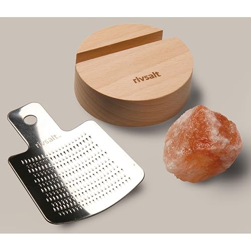 rivsalt8482; Set RS01 is best for youRivsalt™ is an all-natural and fun way to add nutrient-rich mountain salt to your favorite dishes. Includes rasp, beechwood base, and natural pink Himalyan salt. When not in use, the stainless steel grater fits tidily back on the handsome beechwood base. Includes 1 rock (1-1.75 oz).