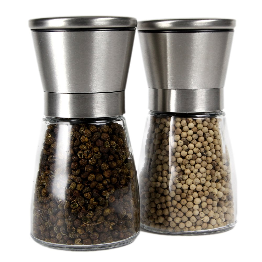Stainless Steel Salt and Pepper Grinder Set /Brushed Stainless Steel Pepper Mill and Salt Mill, Glass Body, Adjustable Ceramic Rotor … is best for youDescription Feature: Size: 6.5*13.5 cm. Material: stainless steel (upper part); body: glass; Inside: ceramic rotor. Easy to use and clean, especially body is made by glass, which could easily clean by water. It uses with freshly ground spices to produce savory seasoning during meal preparation. Simple and elegant design could compliment any kitchen style. Ceramic rotor is fully adjustable to produce the perfect sized grind to fit your dish. The salt grinder and pepper grinder are both built with an adjustable ceramic grinding mechanism that allows you to manually choose the coarseness of the seasoning, ranging from fine to coarse. With covered lid caps, our salt and pepper grinders keep your spices fresh longer. It's easy to buy, easy to use and sure to bring tons of smiles, along with class and fun to someone's kitchen. Family, friend or colleague, truly makes a great gift for anyone. Search terms salt and pepper grinders, salt and pepper grinder combo salt and pepper grinder set, salt and pepper grinder salt and pepper mill, salt and pepper mill set salt & pepper mill sets, pepper mills, OXO Good Grips Salt and Pepper Grinder Set