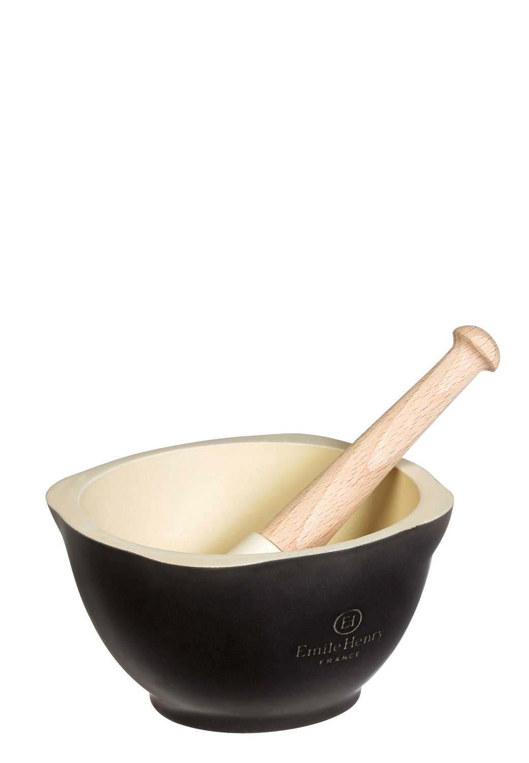 Emile Henry Made In France Mortar and Pestle, Slate is best for youColor:Slate The mortar and pestle has been used for hundreds if not thousands of years as the tool of choice to crush spices and herbs. The emile henry mortar and pestle is designed to extract the flavor and oils from spices such as fennel, cumin and cloves while offering the classic beauty of french styling. The shape of the mortar, the bowl, is designed so cooks can comfortably press and crush spices in the kitchen or at the table. The bowl of the emile henry mortar is 5.5-inch in diameter giving plenty of room for grinding and crushing spices, herbs and garlic. The mortar is well-balanced and deep offering leverage and stability. The unglazed ceramic interior offers the friction needed to properly grind spices.