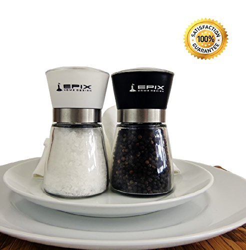 Refillable Salt and Pepper Grinder Set - Multi-Function Pepper Mill - Spice Grinder - Salt and Pepper Shakers - Sleek, Sophisticated Spice Mill- Durable, High Grade Ceramic Adjustable Grinding Core is best for youThe Ultimate in Streamlined, Sophisticated Kitchenware – without Compromising Quality! Order now and receive a copy of our E-Cook Book as an add bonus If you are someone who wants it all when it comes to your kitchen, the chic and modern design of our revolutionary salt and pepper grinder set, coupled with a superior, interior quality is sure to hit the mark! This spice grinder comes complete removable end caps for a clean surface before and after every use. What could possibly make this sleek pepper mill any better? How about the incorporation of clear viewing windows so that you can easily spot when a certain spice is running low and make a mental note that it’s time for a refill. These viewing windows into your world of spices are composed of quality glass for beauty and longevity. Only the best of the best will make it off of our shelves and into your home! Because we know that superior quality is just as important as an elegant appearance, our salt and pepper shakers contain a 100% ceramic grinding core. Unlike most products that contain a heavy duty plastic grinding mechanism within the unit, that unavoidably wears out, dulls and eventually breaks over time, the incorporation of CERAMIC grinders within our spice mill’s interior, are specifically put into place to provide you with a LIFETIME of safe and simple grinding, that is as sharp a grind from your first twist to your last! With our 60 day money back guarantee, what do you have to lose? If you are unsatisfied with your purchase for any reason, simply return your grinder within the first 60 days for a FULL REFUND! So what are you waiting for? Add our dual sided spice mill to your cart today – and instantly discover the difference!