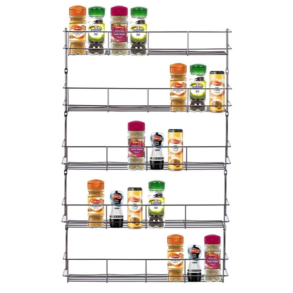 YonTree 5 Tiers Steel Spice Rack Herb Jar Holder Cabinet Shelf Storage Wall Organization is best for youSize:5-Tiers The rack comes complete with two sets of screws - One set for fixing to walls and one set for fixing to the inside of cupboards making it easy to assemble in just a few steps. Use the Cabinet Door space efficiently ,No more Haste when cooking Can store 40 jars in total If you Buy the 5 Tiers . Easy to Installation