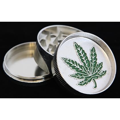 1 X 2" Three piece Herb, Spice, Tobacco Grinder with Cannabis Leaf image is best for you