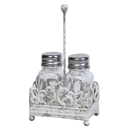 Creative Co-op Cottage Chic Metal Salt and Pepper Shaker Caddy with Glass Shaker, 7.5-Inch is best for youVintage look white metal salt and pepper shaker caddy. Includes 2 glass shakers with metal tops. Perfect addition to any table top.