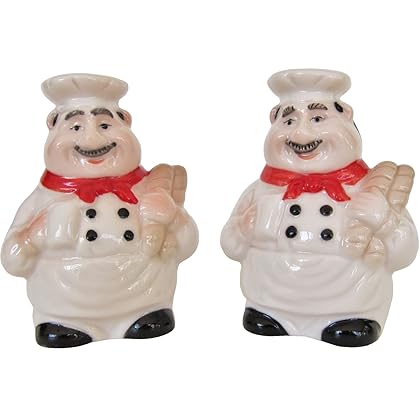 Italian Chef Salt and Pepper Shaker Set is best for youMatching pair of Fat Chef salt and pepper shakers Each shaker is approximately 3' tall and 2.5' in diameter Coordinate with many other Fat Chef kitchen decor items Jolly twin fat chefs are carrying loaves of bread Product Details Manufacturer: Chef Decor Product Dimensions: 2 x 2 x 3 inches