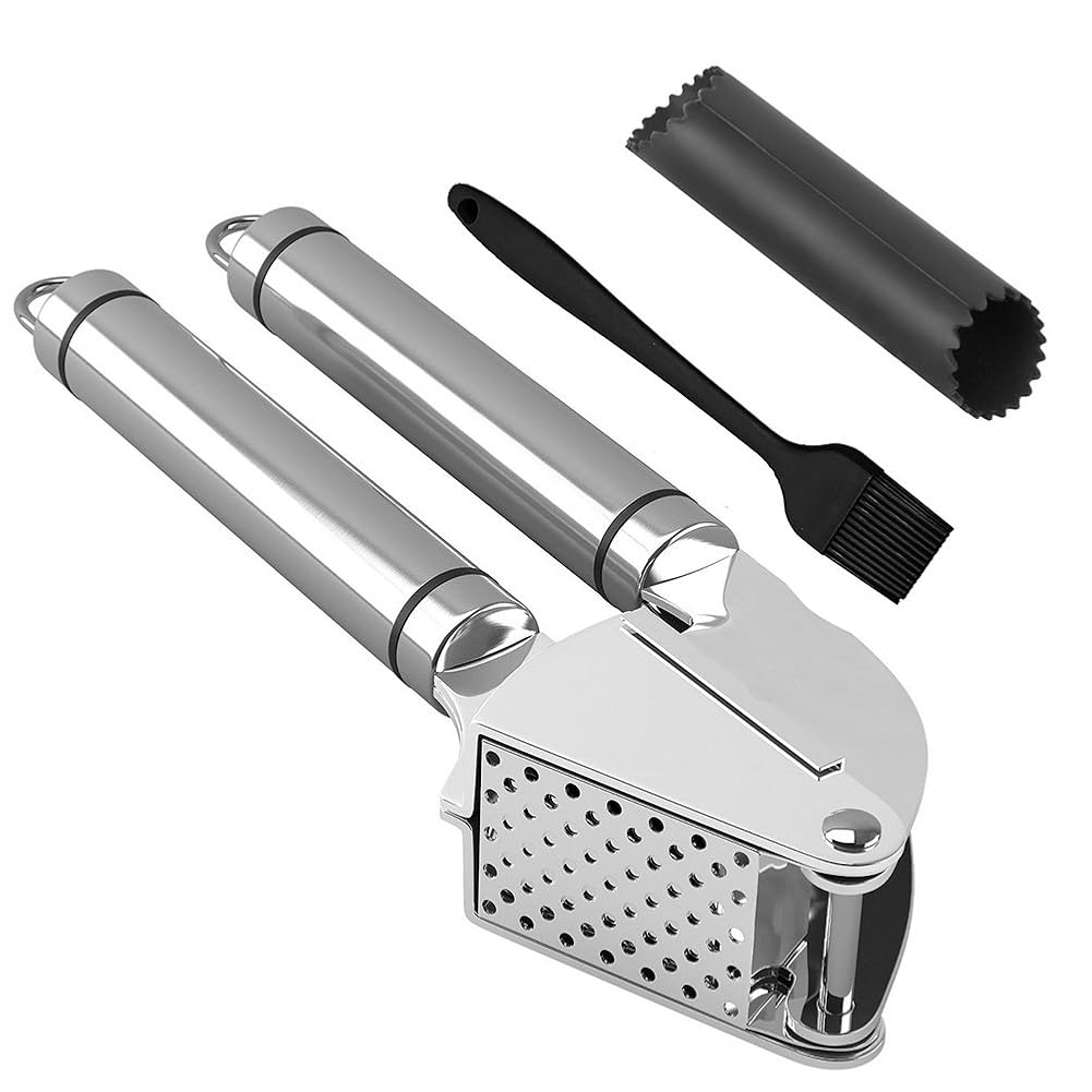 Pengxiaomei Garlic Press and Peeler Brush Set. Stainless Steel Mincer and Silicone Tube Roller is best for youItem Type: Garlic Presses Material: 304 Stainless Steel Color: Silver Size: Approx. 19.5cm/7.67inch Quantity: 1pc Note: 1.The actual product maybe slightly different from the picture shown due to lighting and the color setting of each individual monitor. please Allow the Slight Color Difference£¡ 2.All the sizes are for your reference only. 2~3 cm data error is allowed. Thank you for your understanding.