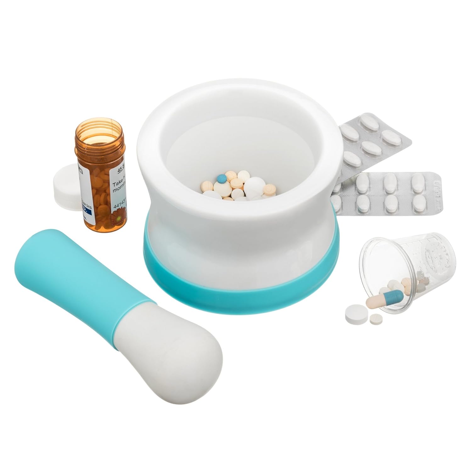 Porcelain Mortar and Pestle Set. Choice of 4 colors. Perfect for crushing pills in chemistry or kitchen. Small, unpolished ceramic and non-slip. (Aqua Blue) is best for youColor:Aqua Blue - The mortar and pestle are ancient tools that no modern kitchen should be without. - handy for everything from cracking peppercorns and crushing tender herbs to making pesto and guacamole. - Crush vitamins for the kids, or for putting in smoothies. - Mash roasted herbs and spices for delicate cuisines. - Not too heavy. The mortar is only 1.7lb, yet sturdy enough with its silicone base to do the job.