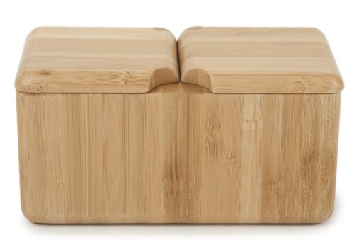 Core Bamboo Double Square Salt Box is best for youColor:Beige Classic bamboo double square salt box is simple and easy to use. With an easy slide-off lid it has enough space to store salt or your favorite spices. Having this salt box handy will make cooking a breeze. Leave on your kitchen counter for easy access. Made of strong, natural bamboo by Core Bamboo's skilled artisans. All of Core Bamboo's items are distinctively stylish, ultra durable, and totally organic. The benefits of using bamboo are numerous. For example: As a member of the grass family, not a tree, it grows at a much quicker rate than any other wood. From start to harvest (60-70 feet tall) it can take just four years. Bamboo is also one of the strongest yet lightest materials around. Bamboo is 16% stronger than Maple and is 33% lighter in weight than Oak. Most importantly, it holds the promise of a sustainable, cost effective, and ecologically responsible alternative to the widespread clear cutting of our old growth forests. Bamboo is good for you and good for the environment! Clean with warm soapy water or a damp cloth. The classic bamboo double square salt box is simple and easy to use. The box features dual easy slide corner hinged lids with a magnetic closure to ensure that the lids stay shut when not in use! Store two of your favorite salts or spices in one box! Having this salt box handy will make cooking a breeze. Leave on your kitchen counter for easy access. Made with premium hand selected bamboo.