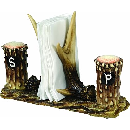 River's Edge 520 Hand Painted Poly Resin Antler Salt and Pepper Shaker with Napkin Holder best Seasoning & Spice Tools